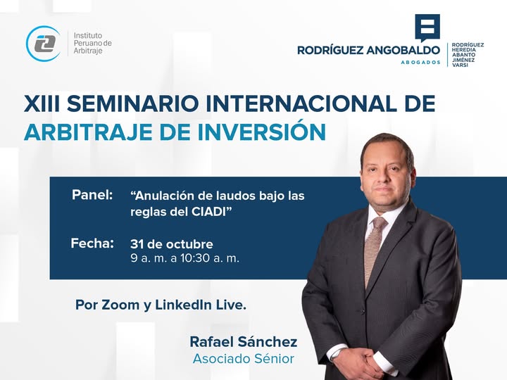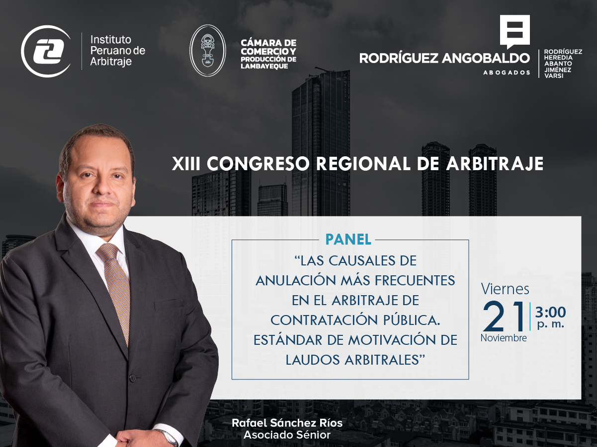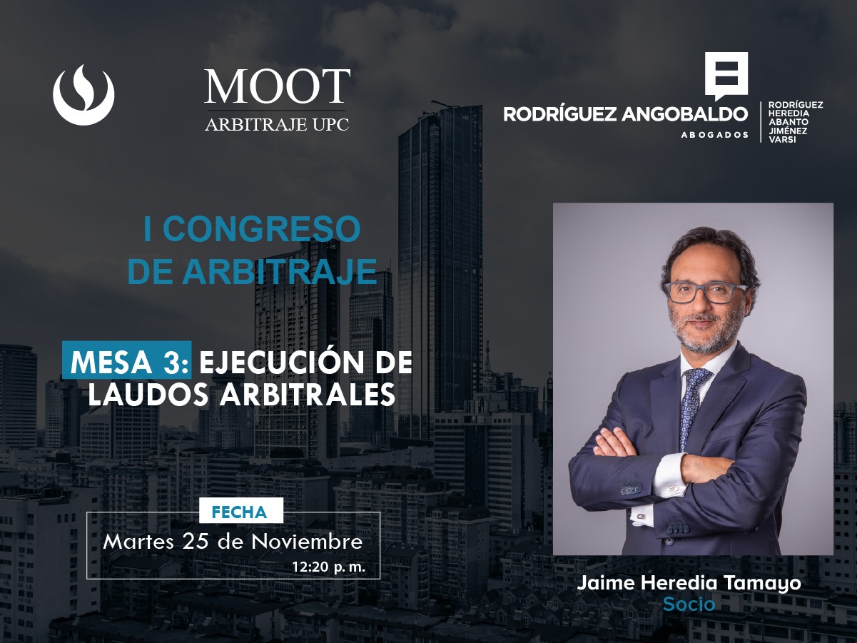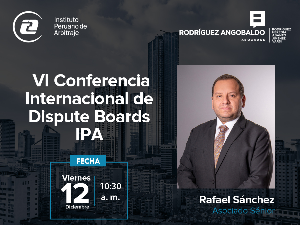 Rafael Sánchez Ríos, asociado sénior de nuestra firma, participará en la VI Conferencia Internacional de Dispute Boards IPA, organizada por el IPA – Instituto Peruano de Arbitraje, y que tendrá lugar los días jueves 11 y viernes 12 de diciembre. Su intervención será en el panel “Oportunidades, beneficios, retos y problemas en los Dispute Boards”, … Leer más