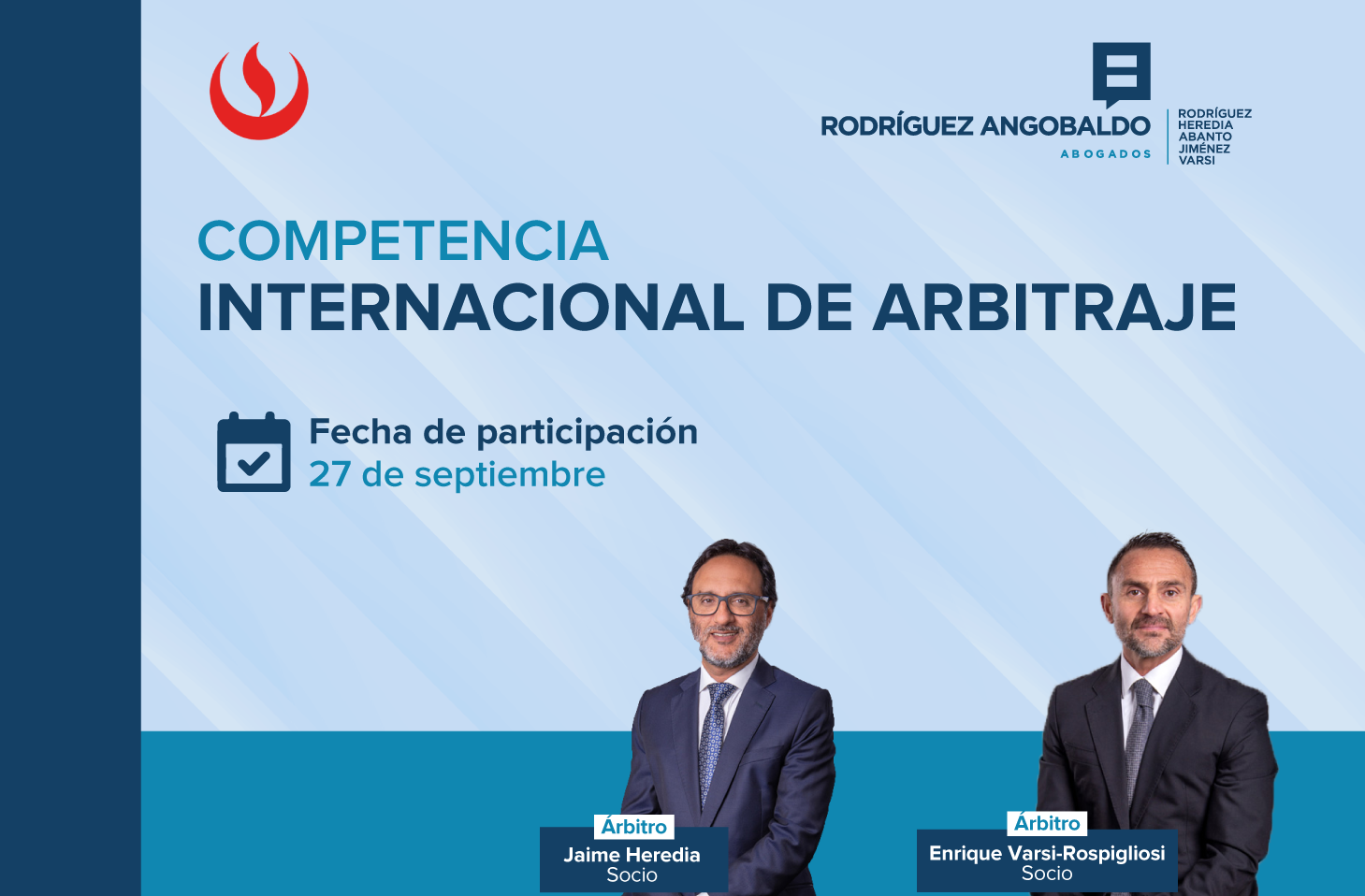 Nuestros socios Jaime Heredia Tamayo y Enrique Varsi-Rospigliosi participaron como árbitros el sábado 27 de setiembre en la XVIII Competencia Internacional de Arbitraje, que se desarrolló del 25 al 29 en la UPC – Universidad Peruana de Ciencias Aplicadas.